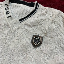 Áo len trắng cổ tim cho bé trai. Chất len đẹp đanh ko bai. Nhưng hơi xù một xíu