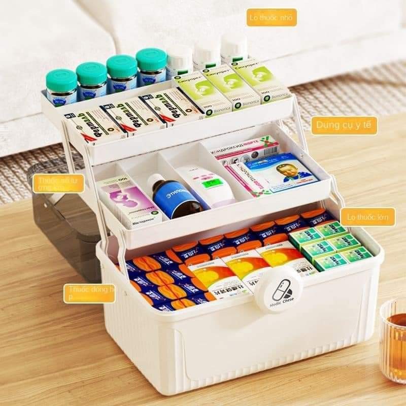 Hộp Đựng Đồ 3 Tầng Cỡ Lớn Đa Năng Tiện Dụng Cho Gia Đình - Có thể làm tủ đựng thuốc - Làm bằng nhựa PP rất an toàn, tiện lợi giúp bạn lưu trữ và bảo quản thuốc hợp lý, tránh ẩm mốc hay nhiễm khuẩn. - Hộp có kiểu dáng gọn gàng, đẹp mắt, giúp việc sắp xếp các loại thuốc một cách có trật tự, ngăn nắp, gọn gàng. Nhờ vậy, bạn sẽ dễ dàng tìm thấy loại thuốc hoặc món đồ khi cần gấp. - Đặc biệt, hộp thuốc còn có khóa và quai xách, giúp bạn dễ dàng di chuyển khi cần. - Thiết kế thông minh thuận lợi cho việc sử dụng và vệ sinh. - Nắp hộp trong suốt giúp bạn quan sát các loại thuốc, vật dụng bên trong. - Ngoài tính năng đựng thuốc và đồ y tế, hộp nhựa còn thích hợp dùng để đựng các dụng cụ, đồ lặt vặ...Read more