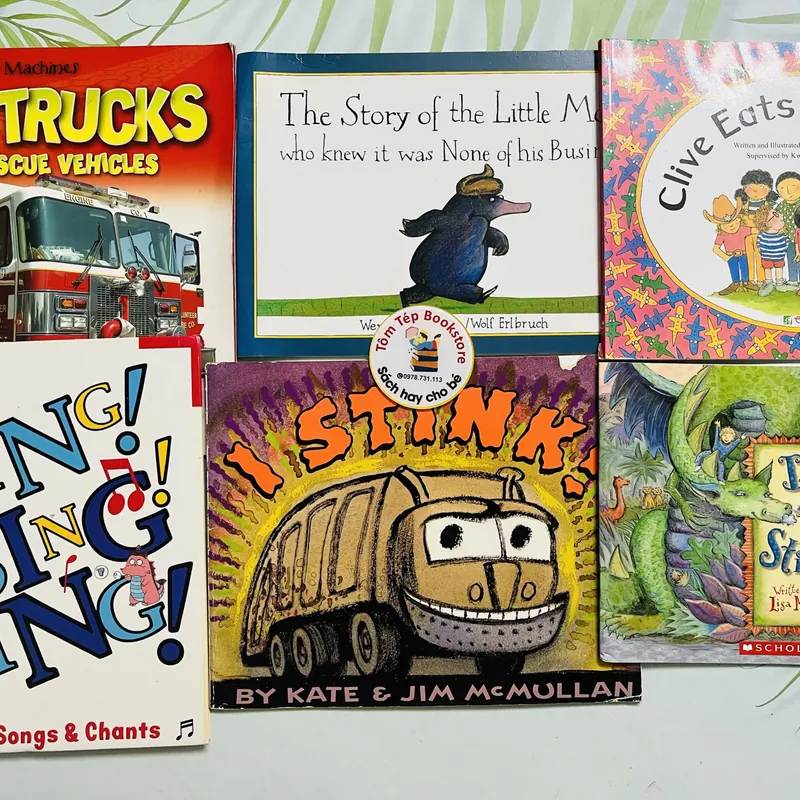 Set picture books đầy màu sắc, hài hước và tràn ngập phương tiện, âm nhạc, phiêu lưu. 📚 Các tựa sách trong set: • Fire Trucks and Rescue Vehicles – Khám phá xe cứu hỏa và các phương tiện cứu hộ. • The Story of the Little Mole Who Knew It Was None of His Business – Câu chuyện chú chuột chũi hài hước, nổi tiếng toàn cầu. • Clive Eats Alligators – Chuyện thường ngày của Clive và bạn bè, ngộ nghĩnh và thú vị. • Sing! Sing! Sing! – Sách nhạc – chant cho bé hát vui nhộn. • I Stink! – Chuyến phiêu lưu của chiếc xe rác “siêu ngầu” 🚛. • I Miss You, Stinky Face – Lời thủ thỉ ấm áp giữa mẹ và bé, xen chút hài hước dễ thương. 🌟 Điểm nổi bật: • Nhiều xe cộ, phương tiện, nhân vật hài hước → rấ...Read more