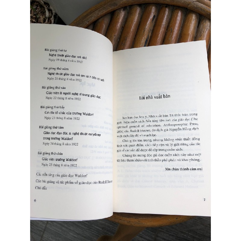 ên sách: Nền tảng tâm linh của giáo dục Tác giả: Rudolf Steiner Dịch giả: Nguyễn Hồng Nhà xuất bản: Tri Thức Năm xuất bản: 2023 Kích thước: 13x20,5cm, bìa mềm, 240 trang Sách mới 100% Giá bìa: 115.000đ Giá bán: 80,000đ Nền tảng tâm linh của giáo dục là một trong những bài giảng xuất sắc của Rudolf Steiner về phương pháp giáo dục Waldorf vì có cái nhìn rộng rãi, sâu sắc, táo bạo và có khả năng tiếp cận cao. Bài giảng được đưa ra năm 1922 tại Đại học Mansfield, Oxford, Anh và thính giả là những người danh tiếng nhất mà Steiner từng thuyết giảng. Đó là hội nghị về “Giá trị tâm linh trong giáo dục và đời sống xã hội” với khoảng 200 người tham dự. Tiến sĩ Millicent Mackenzie, sau này là Giáo sư G...Read more