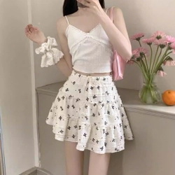 Chân Váy Nữ Ngắn Bèo Trắng In Nơ Freesize Dưới 55kg Hàng Mới