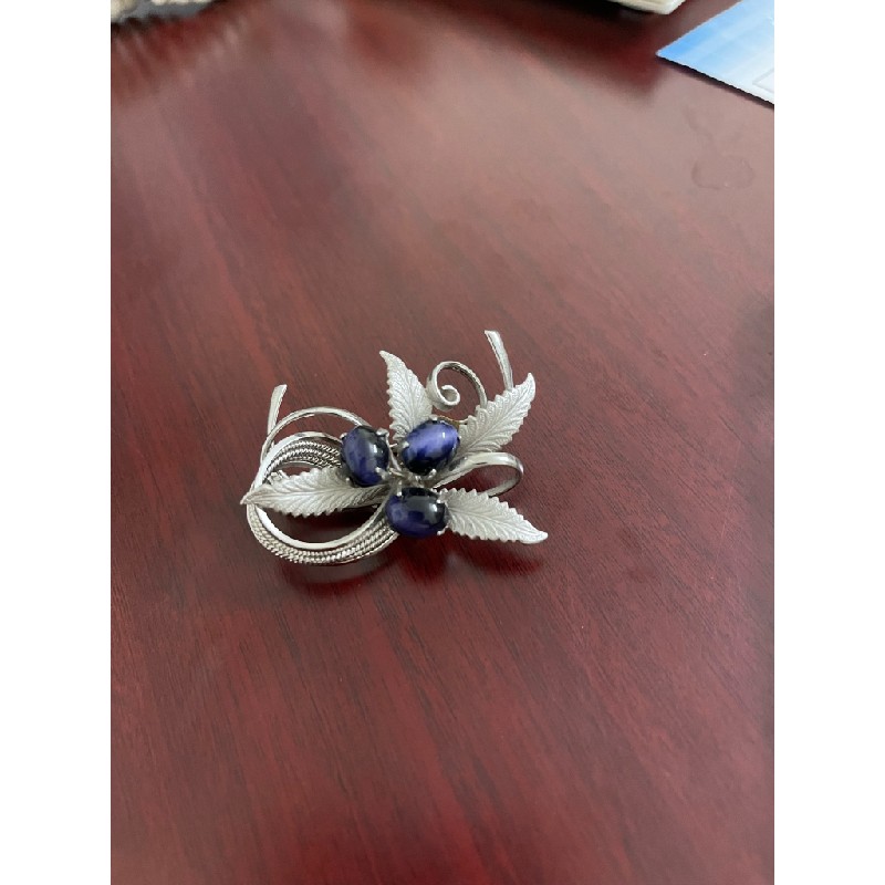 Ghim cài áo đính 3 viên đá mắt mèo màu tím, đá tự nhiên, không phải đá nhân tạo.