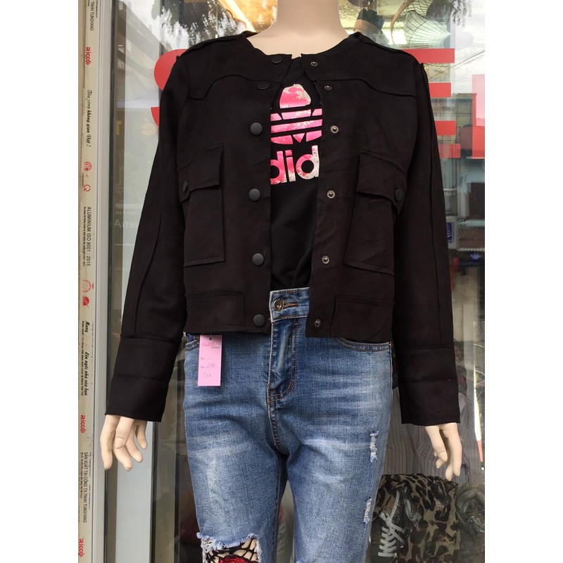 Áo khoác da lộn form ngắn cho bạn nữ size S-M đều vừa, phù hợp giao mùa và mùa đông