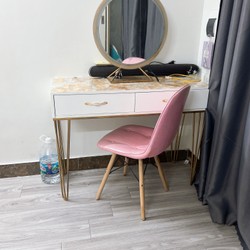 Bộ bàn gương kèm ghế hồng xinh: đã dùng vài lần . Đèn gương lèd vẫn dùng đc . Có thể thay đèn nếu thích. Có chút rỉ chân gương có thể sơn lại Giường tầng trắng 3 tầng , 4 hộc tủ to rộng để đồ hàng xuất khẩu mỹ . Gỗ nhập khẩu. Nhưng ít dùng vì bé nhỏ chưa sử dụng đc. Có ít vết ố có thể sơn lại hoặc lau thuốc tẩy đi Ngoài ra vẫn mới . Người lớn nằm thoải mái Cây cảnh giả ok size to cao khoảng 90cm