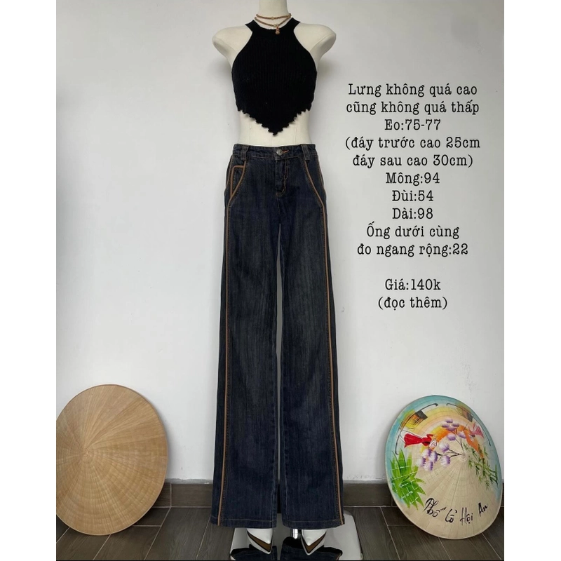 1 chiếc quần jean đậm chất retro, form suông ống đứng. Chất dày dặn, mặc lên không đụng hàng.