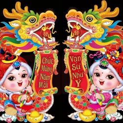Tranh cô cậu dán tết
