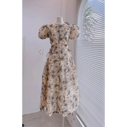 Đầm hoa dáng dài tay phồng hoa đơn giản
