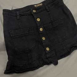 Váy jean đuôi cá màu đen, chất liệu jean.